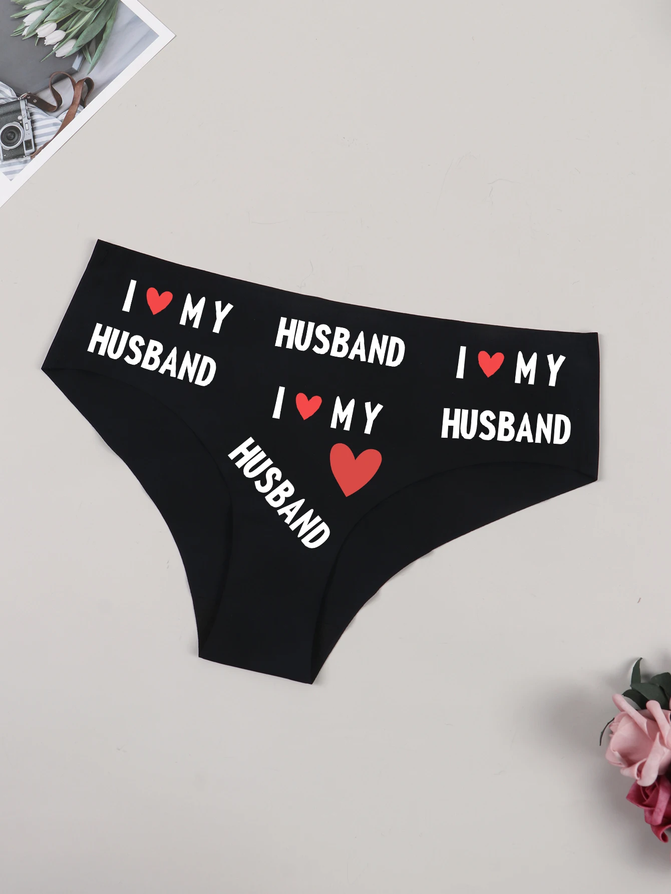 Varsbaby Cheeky Seamless Briefs Panties for Women Sexy Playful Bikini Underwear with I Love My Husband Prints Thong Plus Size